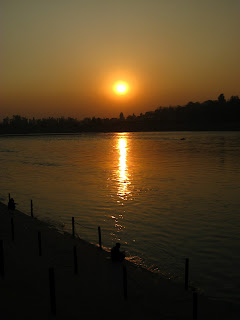 Babas sit on steps, never too far from the Ganges, each with identical skinny legs and shiny knees that reflect the sun. Westerners cloaked in shawls with red tikas float around mentally practising chants or running over a new tabla beat.